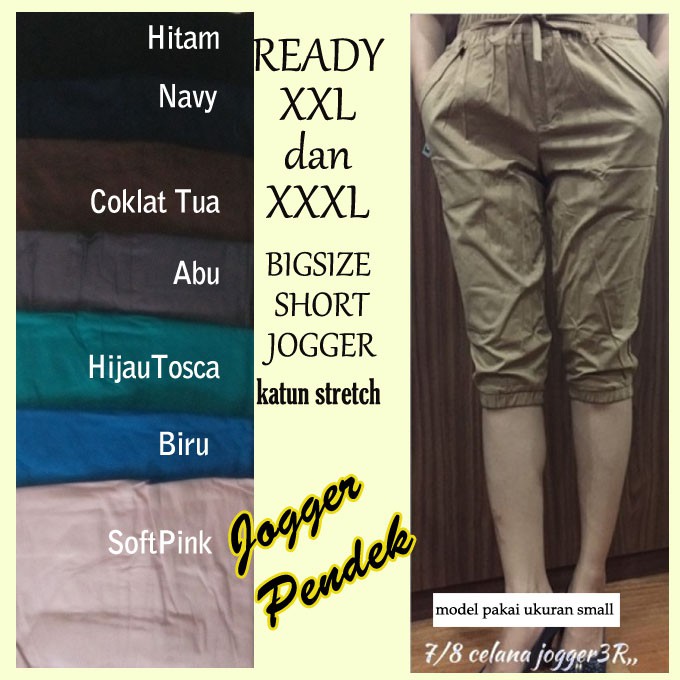 Baju Ukuran Besar Celana Jogger Pendek Xxl Xxxl Wanita Bigsize