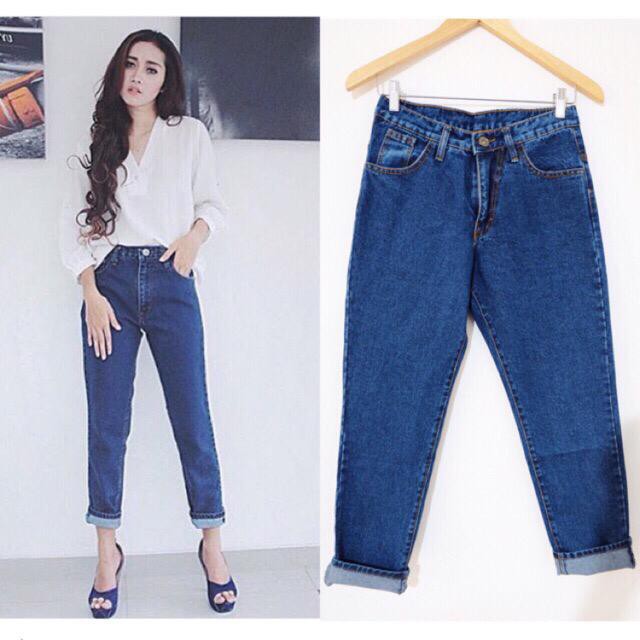 Boyfriend Jeans Light Polos Biru Gelap Celana Boyfriend Dark