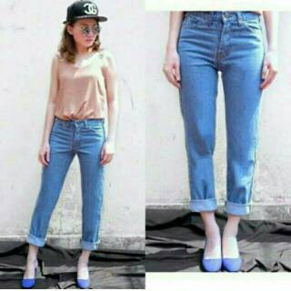 Celana Jeans Boyfriend Plain Biru Medium Ukuran 27 30 Shopee