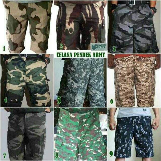 Celana pendek loreng army. Deskripsi celana pendek pria cargo 3 4 loreng army mtr lrg std bahan twill cargo ukuran all size dewasa lingkar pinggang sampai 100 cm fit to l bb sampai 75 kg panjang. 55cm pinggang karet kantong depan 2 dengan perekat dan sleting kantong belakang 1 cocok dipakai santai berpergian outdoor hiking dan camping. Cari produk celana cargo pria lainnya di tokopedia.