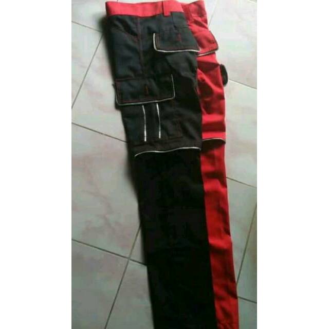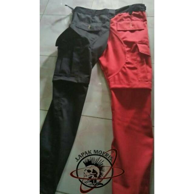 Celana Cargo Panjang Alpin Alvin Alpina Punk Hitam Merah
