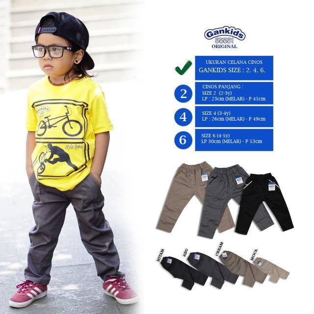 Celana anak chino gankids. Pembayaran mudah pengiriman cepat bisa cicil 0. Untuk belanja dalam jumlah yang banyak di atas 50 pcs hubungi cs kami segera nanti akan kami tanyakan. Mengapa celana ini sangat digemari di berbagai kalangan terutama pria.
