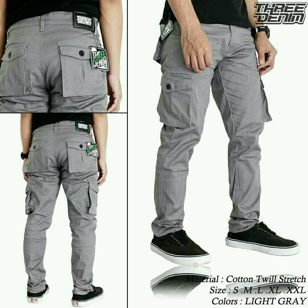 Jual Celana Panjang Pria Cargo Kargo Cowok Kantong Samping Kab