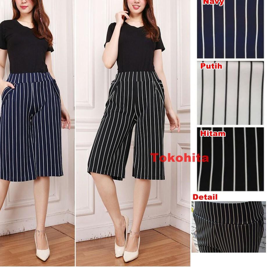 Harga kulot celana 7 8 wanita milano rp29 000. Anda bisa mencari produk ini di toko online yang mungkin jual celana kulot motif salur seperti lazada elevenia blibli tokopedia bukalapak dan masih banyak lagi. Harga celana kulot salur stripe adem good quality termurah terbaik rp36 000.