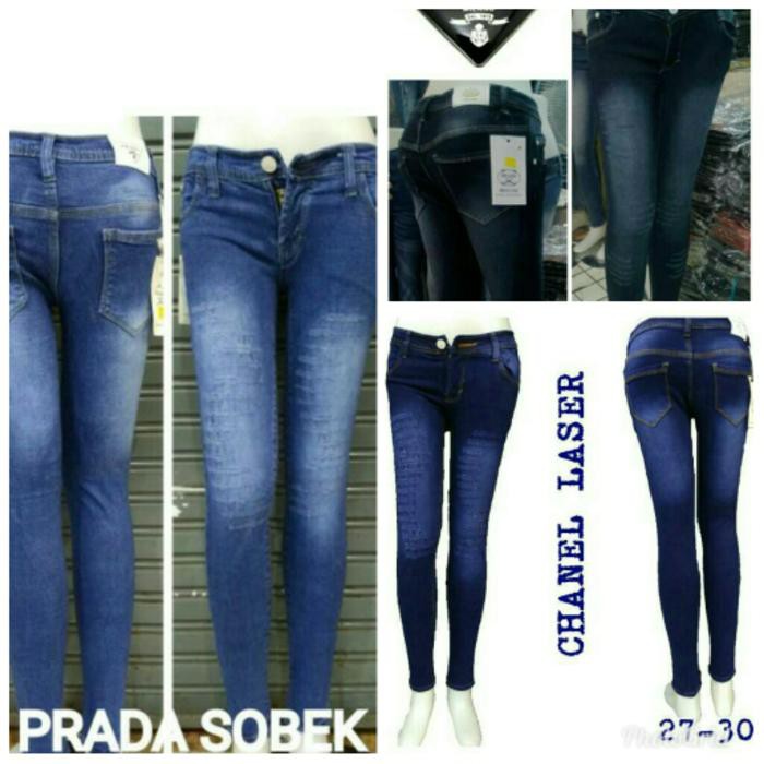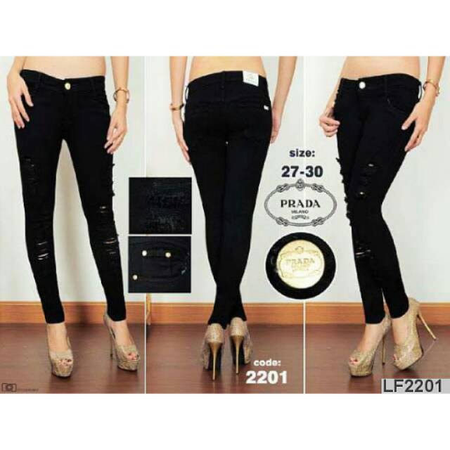 Jual Celana Jeans Panjang Wanita Prada Sobek Laser No 27 28 29 30