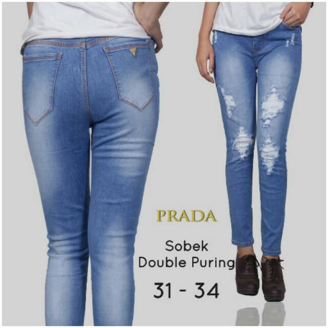 Celana Jeans Prada Sobek Double Puring Murah Termurah Shopee
