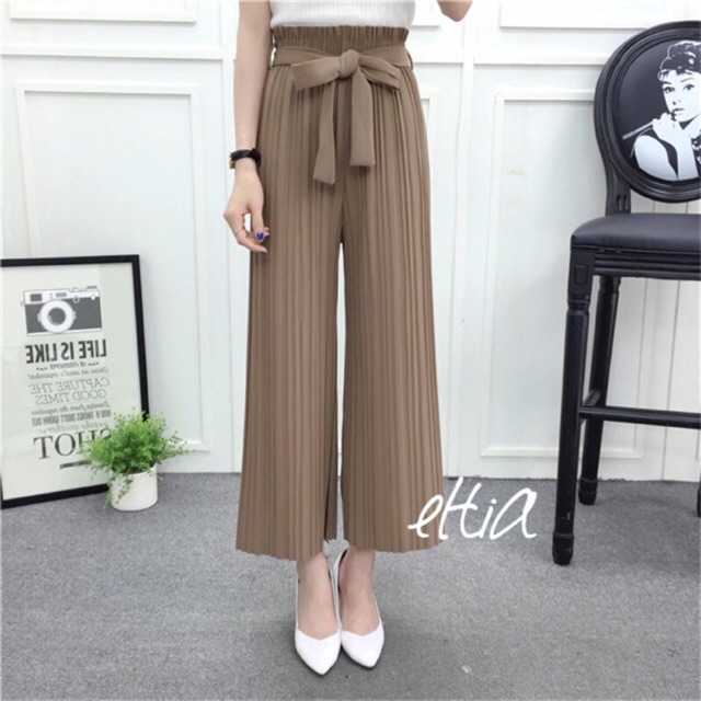 Cs Celana Kulot Plisket Ribbon Pita Pleated Pants Shopee