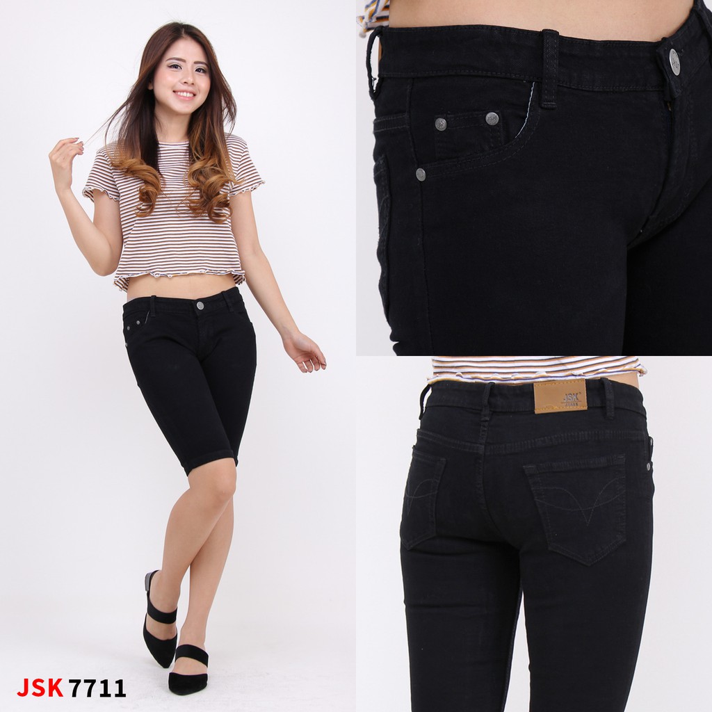 2 Warna Short Jeans 3 4 Celana Pendek Wanita Hijau Hitam Shopee