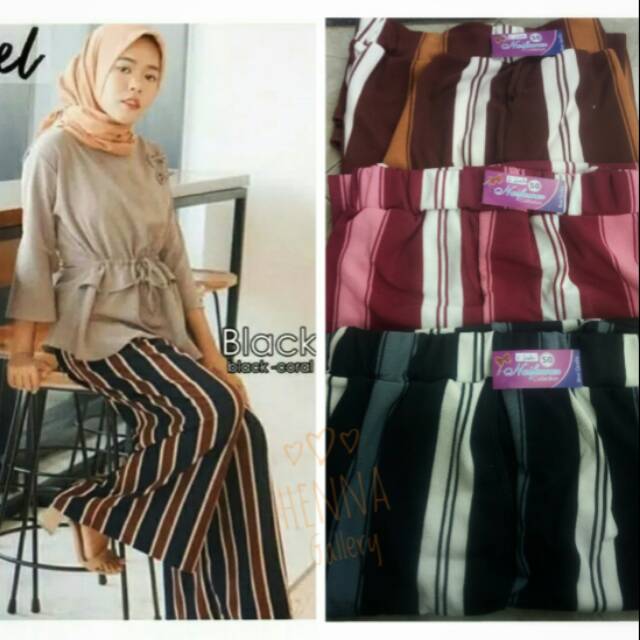 Ready Celana Kulot Wanita Panjang Salur Premium Best Quality Bagus