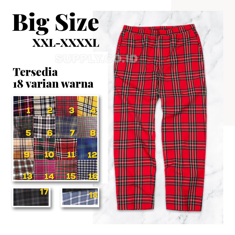 Celana Panjang Jumbo Big Size Unisex Wanita Pria Tartan Pants Xxl