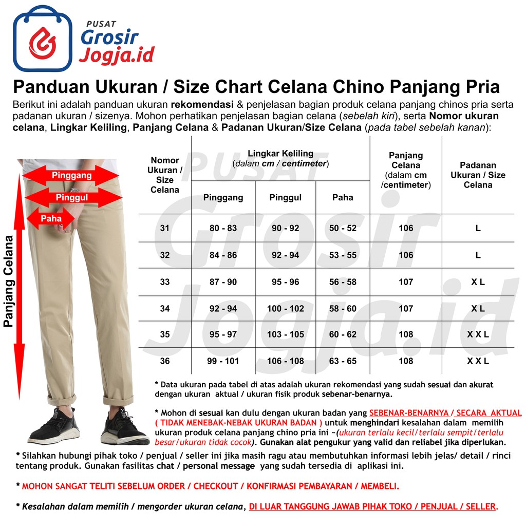 Ukuran Celana S M L Xl Xxl Xxxl Dan All Size Untuk Ukuran
