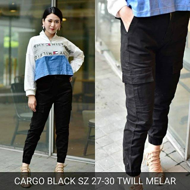 Celana Cargo Black Wanita Hits Kekinian Kantong Jogger Murah Shopee Indonesia