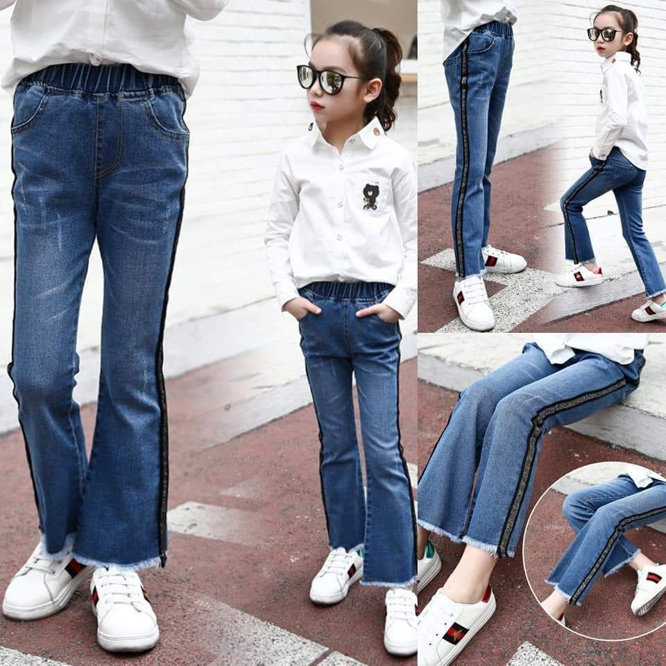 Bawahan Celana Anak Cewek Cutbray Kekinian Jeans List Rumbai