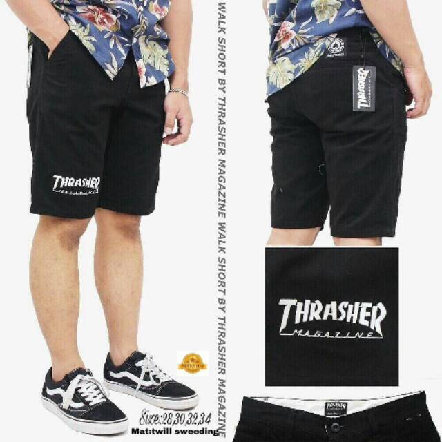 Celana Pendek Cargo Pria Merk Thrasher Warna Hitam Kargo Casual