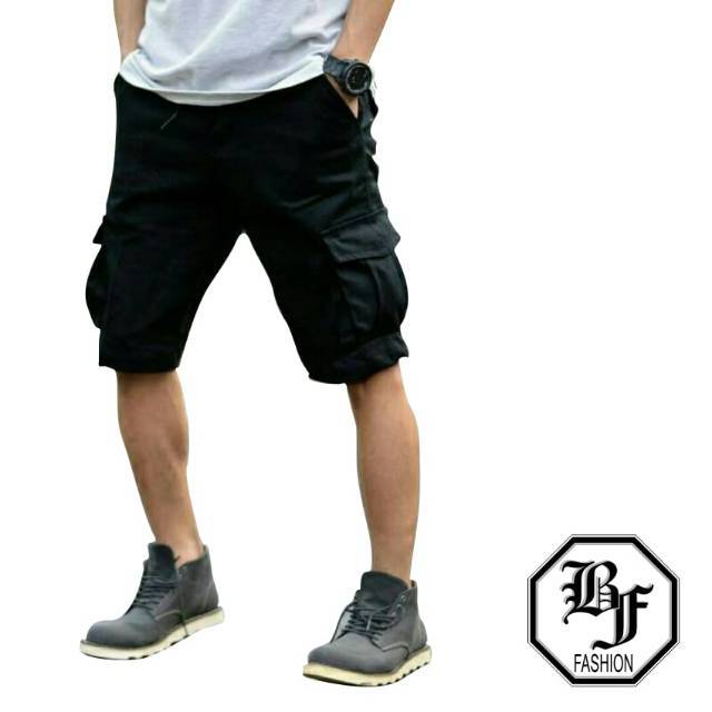 Celana Pendek Hitam Cargo Short Pants Pria Gunung Pendek