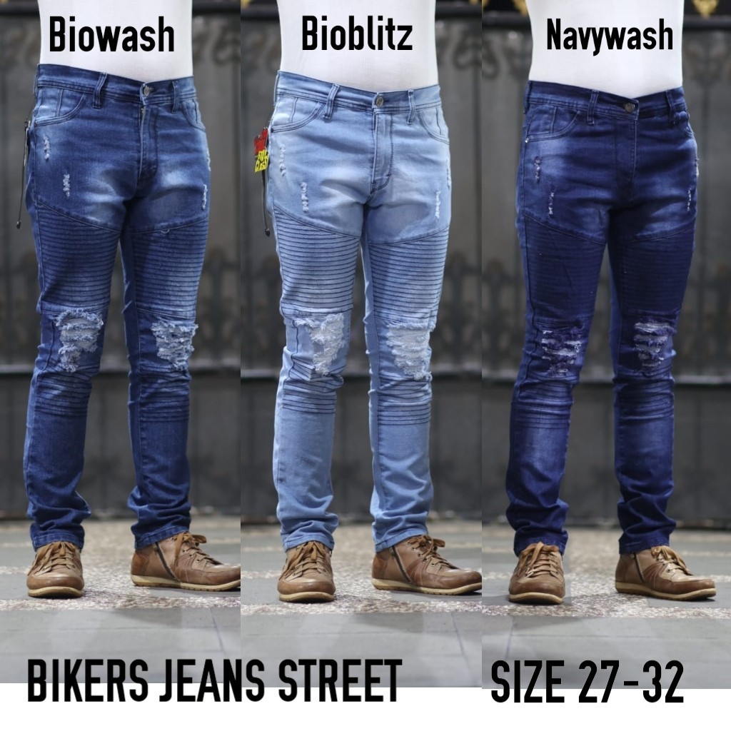 Celana Slim Fit Jeans Pria Terbaru 2020 Ripped Biker Shopee