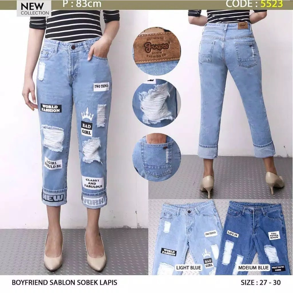 Celana Jeans Wanita High Quality Ripped Boyfriend Jeans Sablon