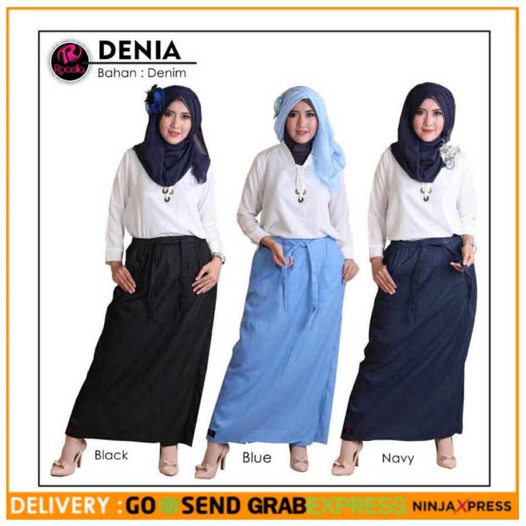 Walaupun denim banyak dikenal sebagai bahan celana jeans bahan ini sebenarnya dapat digunakan untuk berbagai model bawahan lainnya termasuk rok denim. Klik gambar untuk pilih warna 4 warna tersedia. Rok celana muslimah komp.