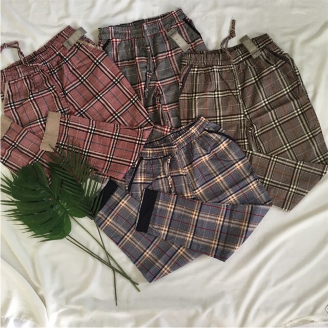 Celana Burberryy Motif Kotak Baggy Pants Kotak Tfrc5618 Shopee
