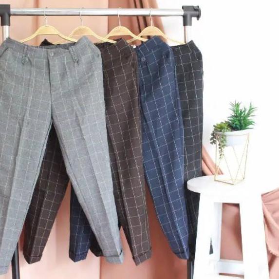 Celana Baggy Celana Basic Katun Streach Motif Kotak Di Lapak