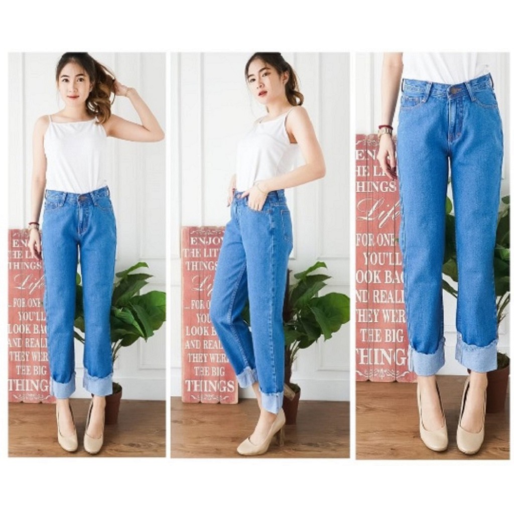 Celana Jeans Wanita Boyfriend Eleonora Model Lipat Bawah Shopee