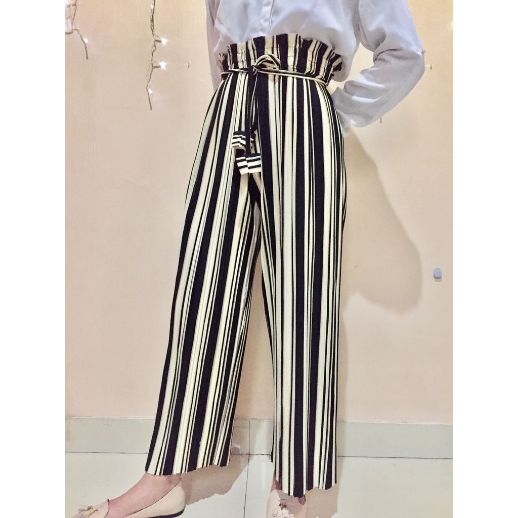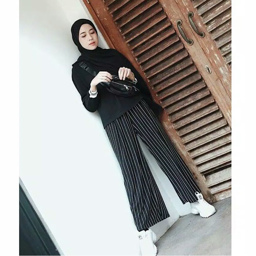 Celana Kulot Kekinian Stripe Belang Salur Hitam Putih Di Lapak