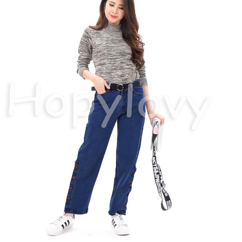 Hopylovy Celana Boyfriend Jeans Wanita Model Kulot Kancing