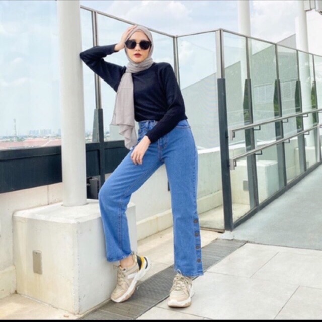 02 Vj Original Kulot Jeans Kancing Samping Shopee Indonesia