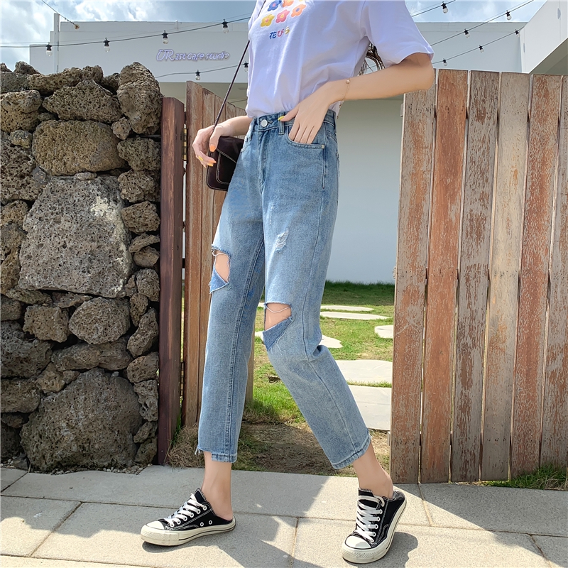 Longgar Robek Celana Jeans Wanita Pinggang Tinggi Jeans Shopee
