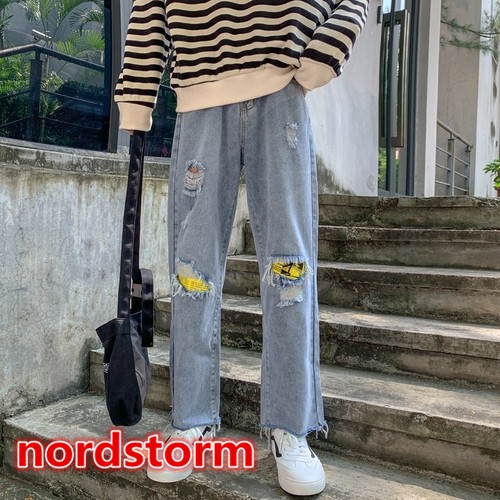 Celana Panjang Model Lebar Desain Lubang Bahan Jeans Ukuran L 4xl