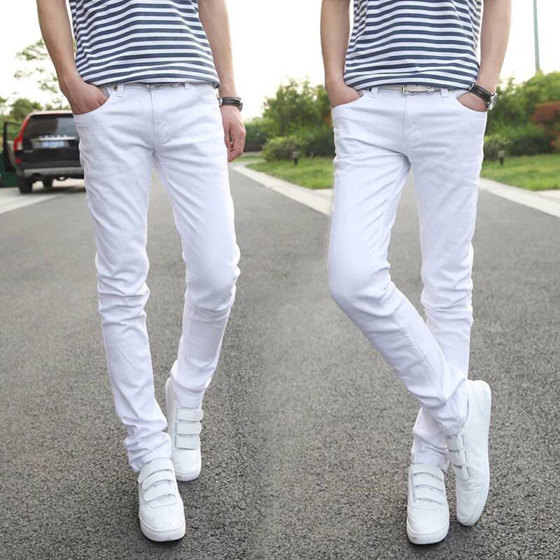 Jeans Pria Hitam Dan Putih Celana Pria Ramping Celana Elastis