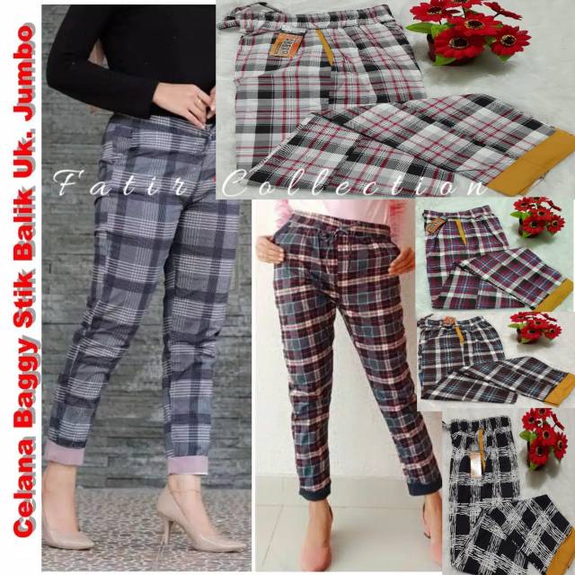 Celana Baggy Motif Kotak Uk Jumbo Celana Tartan Jumbo Celana