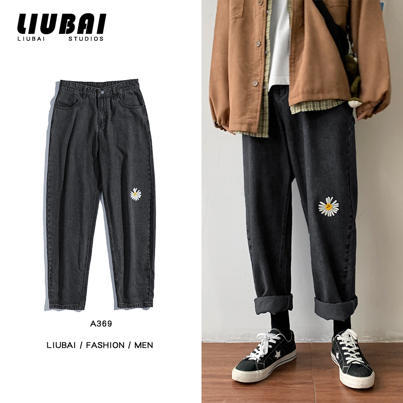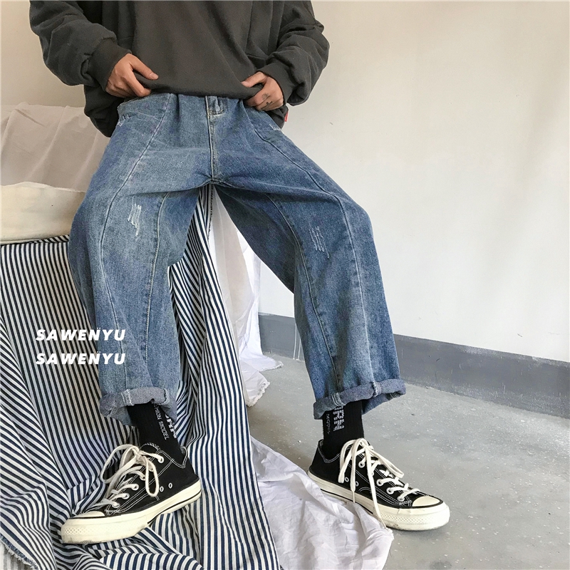 Celana Panjang Jeans Lurus Warna Polos Gaya Retro Untuk Pria