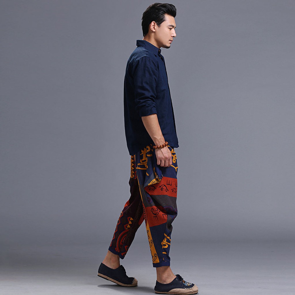 Laki Laki Harem Celana Katun Linen Celana Padat Longgar Festival