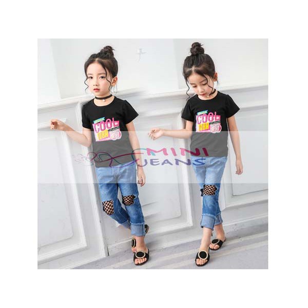 Baju Setelan Anak Perempuan Trendy Kaos Hitam Cool Celana Jeans