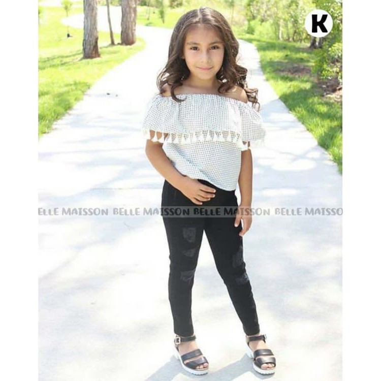 Jual Setelan Anak Perempuan Atasan Putih Hitam Celana Jeans Kota
