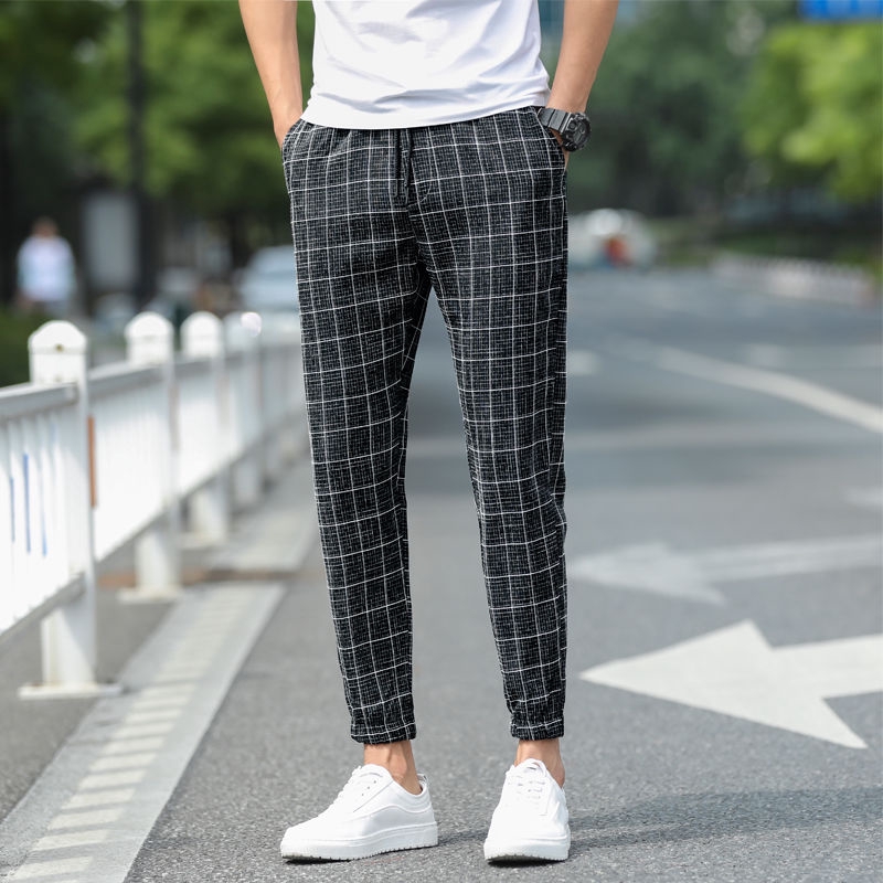 Pria Celana Jogging Versi Korea Dari Kotak Kotak Kasual Longgar