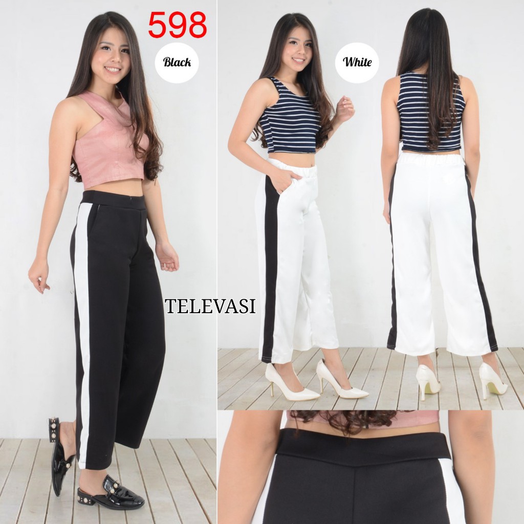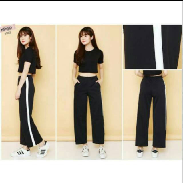 Celana Pant Kulot Slit Belah Garis Stripe Samping Scuba Shopee