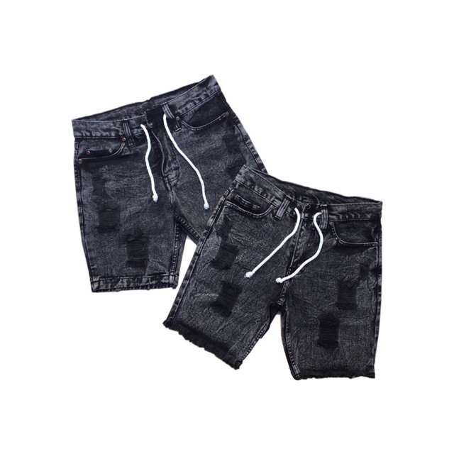 Shortpant Ripped Jeans Wash Celana Pendek Jeans Motif Robek