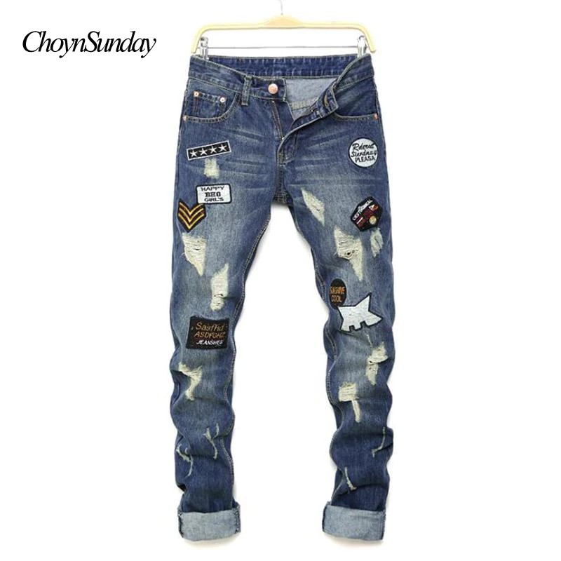 Celana Panjang Jeans Sobek Motif Print Tulisan Untuk Pria Shopee